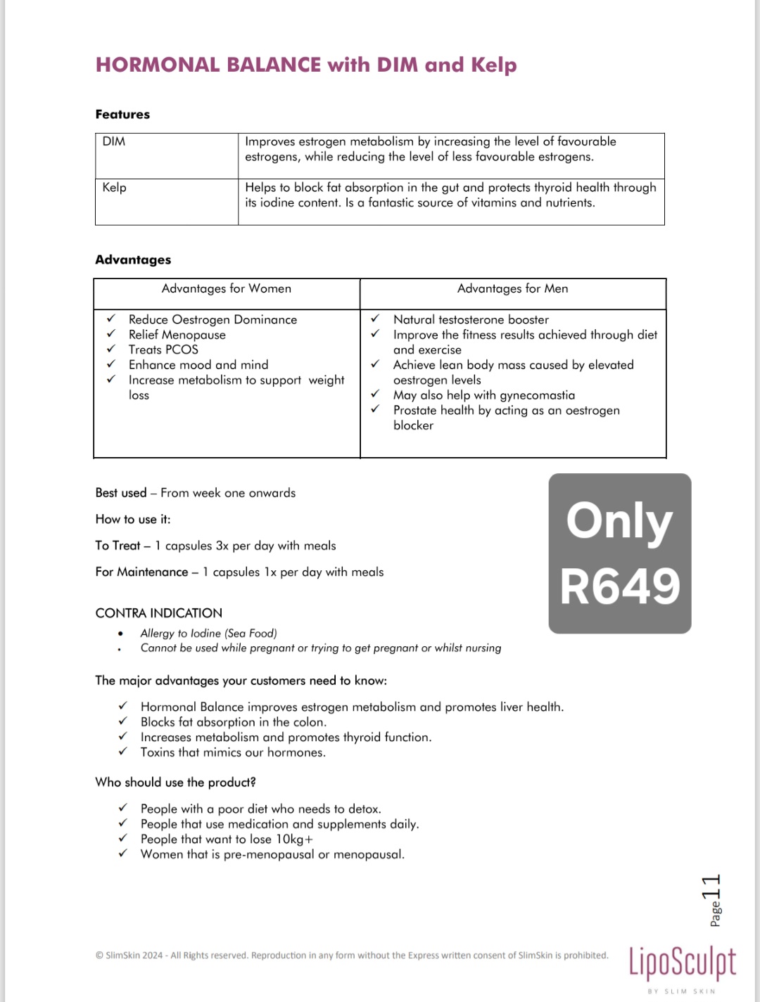 HORMONE BALANCE DIM & Kelp will effectively improve oestrogen metabolism and maintain your body’s ability to regulate hormonal balance, increase metabolism and loss of excess weight gain caused by hormone imbalance.